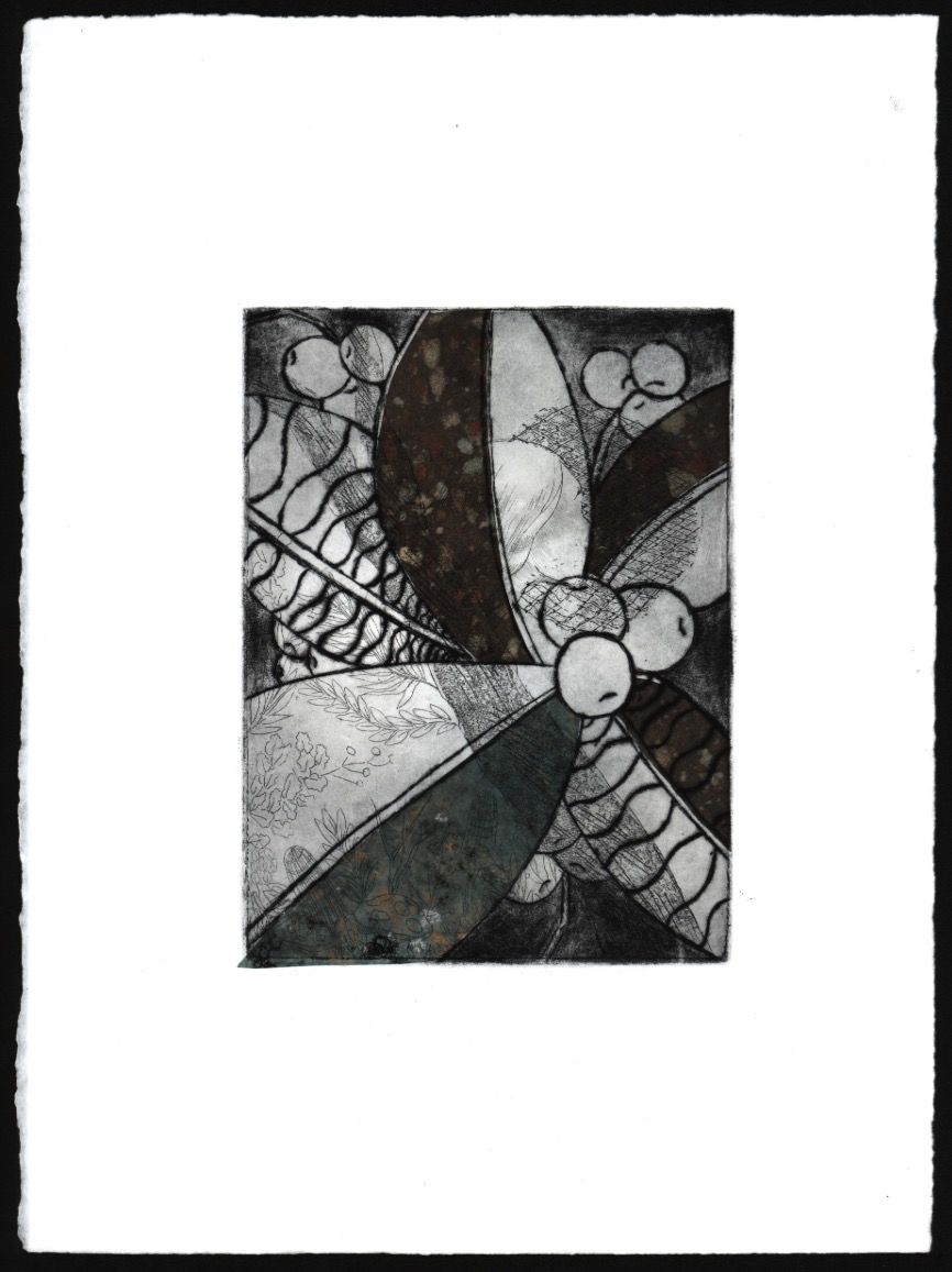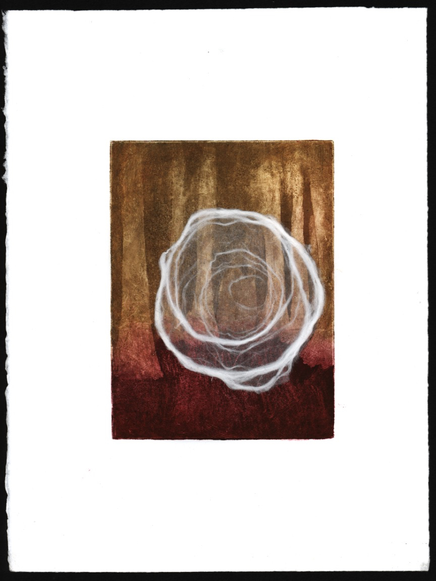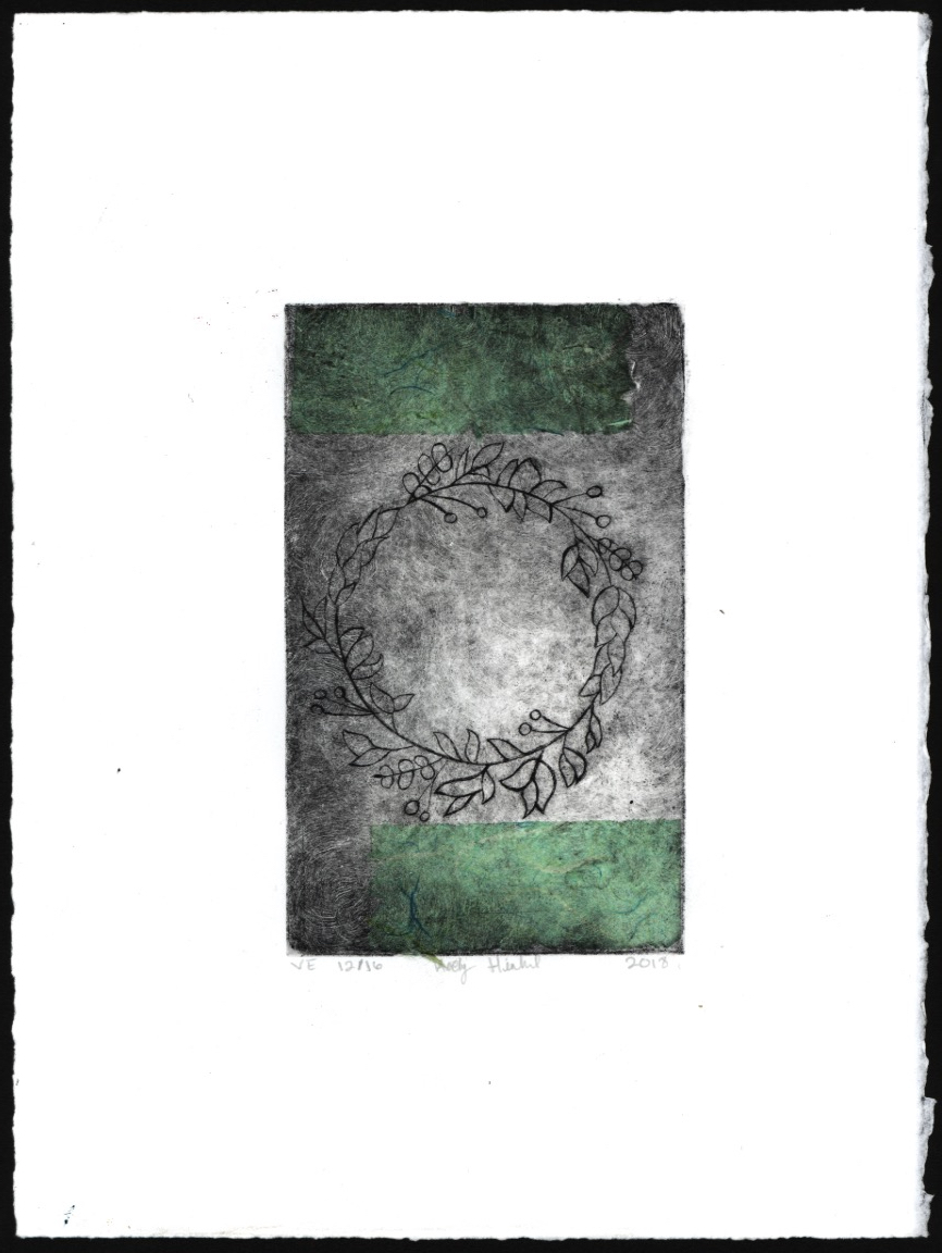 Wreath, intaglio with Chine-colle, 11×15”, 2018