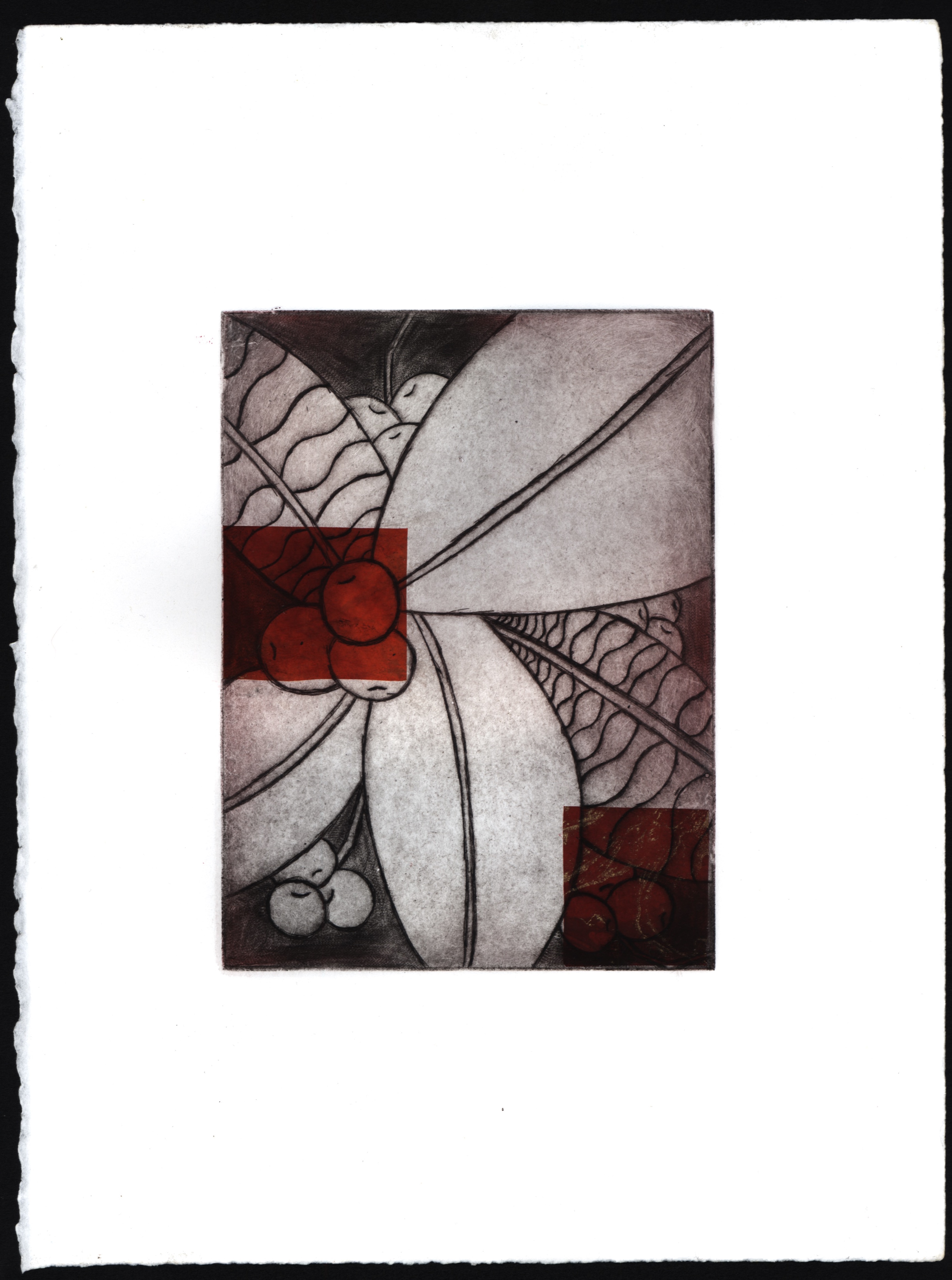 Chickasaw Plums, intaglio with Chine-colle, 11×15”, 2018